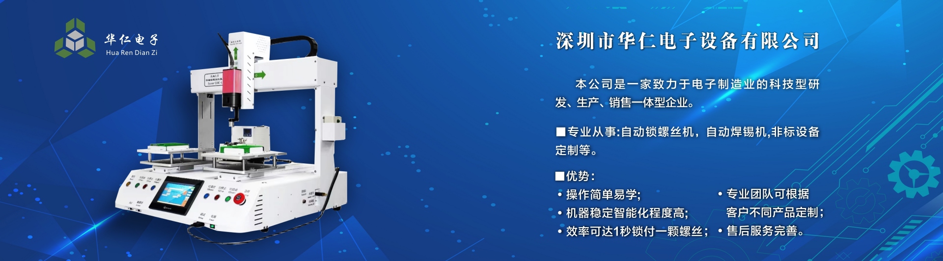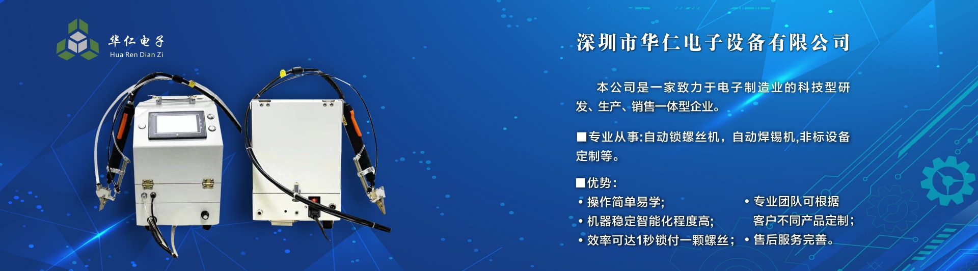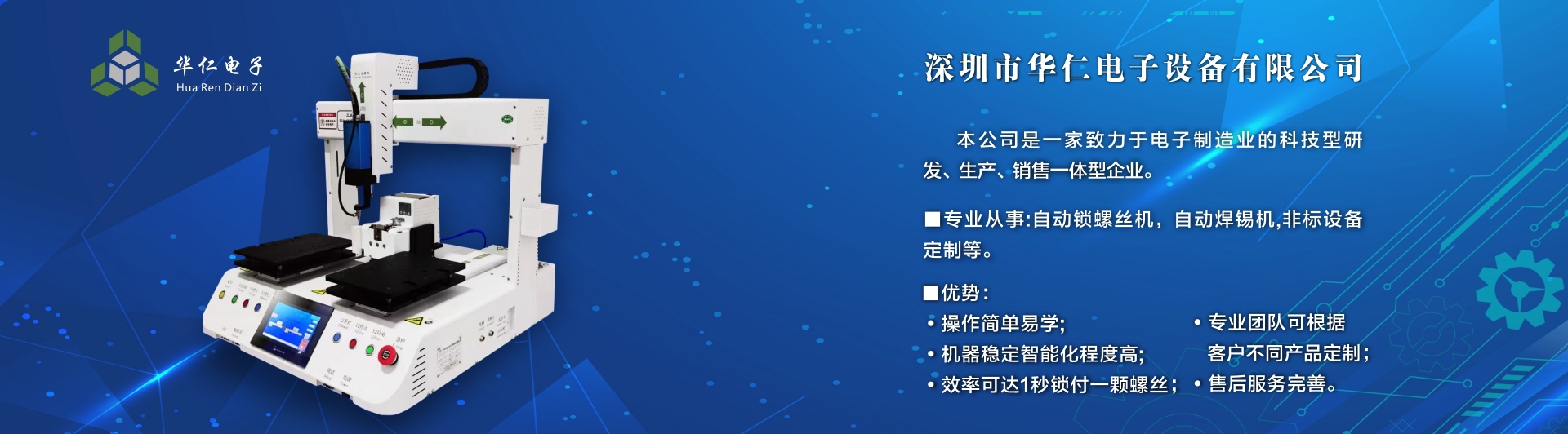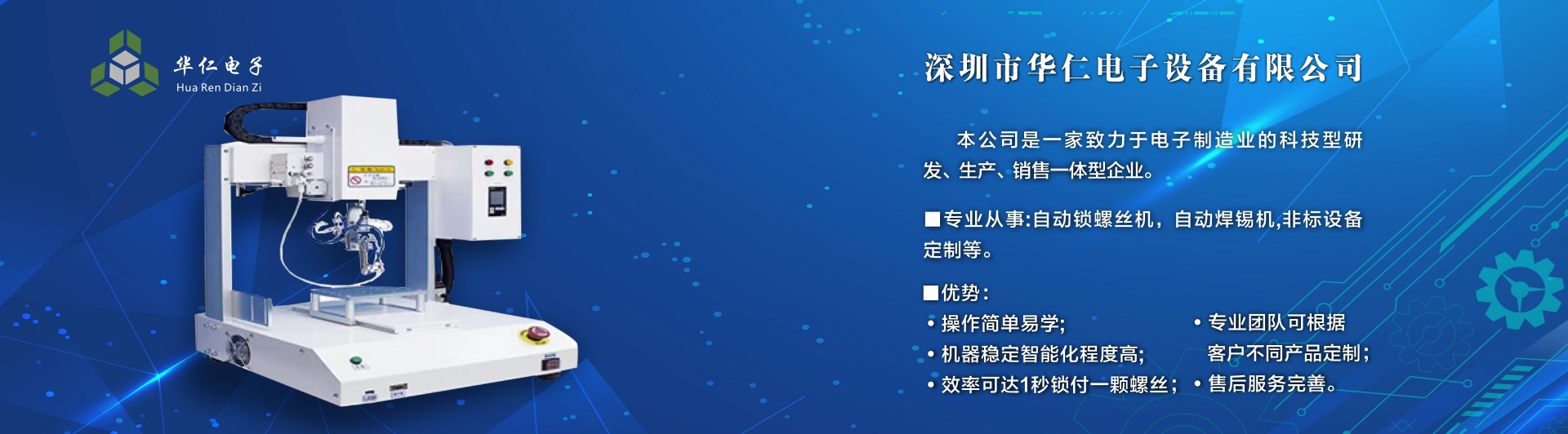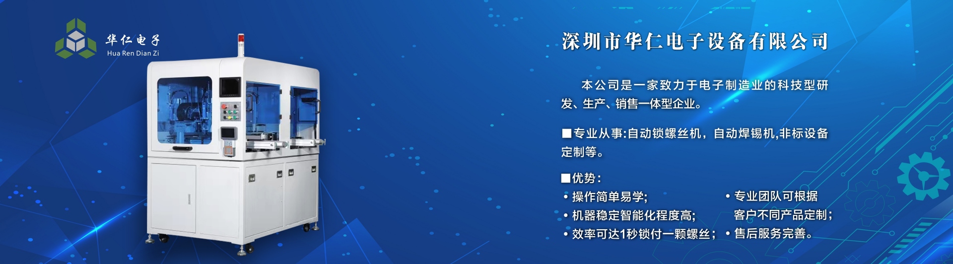 深圳市華仁電子設(shè)備有限公司是一家致力于電子制造業(yè)周邊設(shè)備的科技型研發(fā)、生產(chǎn)、銷(xiāo)售一體的企業(yè),專(zhuān)業(yè)從事:自動(dòng)鎖螺絲機(jī);自動(dòng)焊錫機(jī);非標(biāo)設(shè)備定制機(jī)等,公司長(zhǎng)期以來(lái)在行業(yè)中積累了豐富的經(jīng)驗(yàn),擁有專(zhuān)業(yè)的研發(fā)、技術(shù)、銷(xiāo)售支持工程團(tuán)隊(duì)、各高級(jí)技術(shù)人才為客戶提供優(yōu)質(zhì)產(chǎn)品和服務(wù),同時(shí)不斷吸取國(guó)內(nèi)外先進(jìn)技術(shù),更準(zhǔn)確及時(shí)地為客戶提供優(yōu)質(zhì),性價(jià)比高的產(chǎn)品、公司以專(zhuān)業(yè)的售前、售中、售后服務(wù)贏得了客戶的信賴和好評(píng),為客戶提供先進(jìn)自動(dòng)化設(shè)備一體式解決方案、